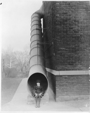 had a large metal tubular fire escape chute that went from the 2nd floor to the playground.