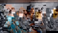 Most Folks: After locating ‘all’ their personal ‘seat’ stuff’ AND staying seated until ‘seat belt’ signs turn off, …. half sitting/standing they, try to squeeze into the aisle, grab their overhead bag without hurting anyone,