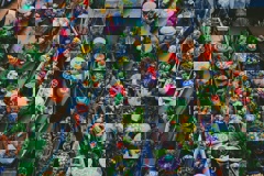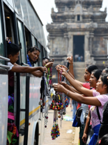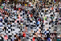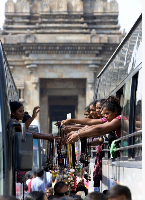 Crowded tourist sites, congested train platforms, sardine-packed commuter trains & buses, busy transportation hubs, sleeper buses/trains, & tourist street crowds.