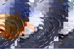 letting fast-flowing creek water wash away the unwanted dirt …leaving ONLY the precious travel nuggets — my Travel Buds.