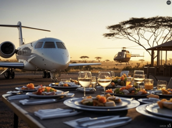1) very exclusive high-end luxury, personalized service accommodations, gourmet meals, and premium transportation (air).