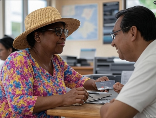Woman booking her own Shore Excursion!